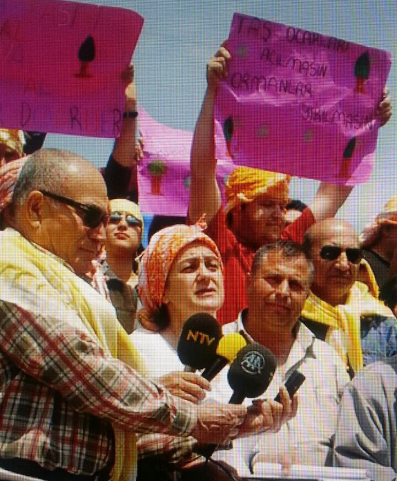 MERCAN: Ziraat Odası Başkanı beni aradı, konuyu anlattı. Hiç unutmuyorum 31 Aralık'tı. Arkadaşlarla o tarafa tatile gidecektik. Yolda köye bir uğrayalım, çıkarız dedim. Gittik ama çıkamadık. Kahveye bir gittik, son derece kafaları açık, hak hukuk peşinde köylüler. Jandarma komutanı gelmiş, elinde kroki anlatmaya çalışıyor. Taş ocağı size uzağa yapılacak diyor. Kırma eleme tesisi nerede olacak diyoruz? Köye 300 metre uzakta. Aslında toz sürekliliği olan tesislerdedir. Burada kiraz ve zeytin yetiştiriliyor.