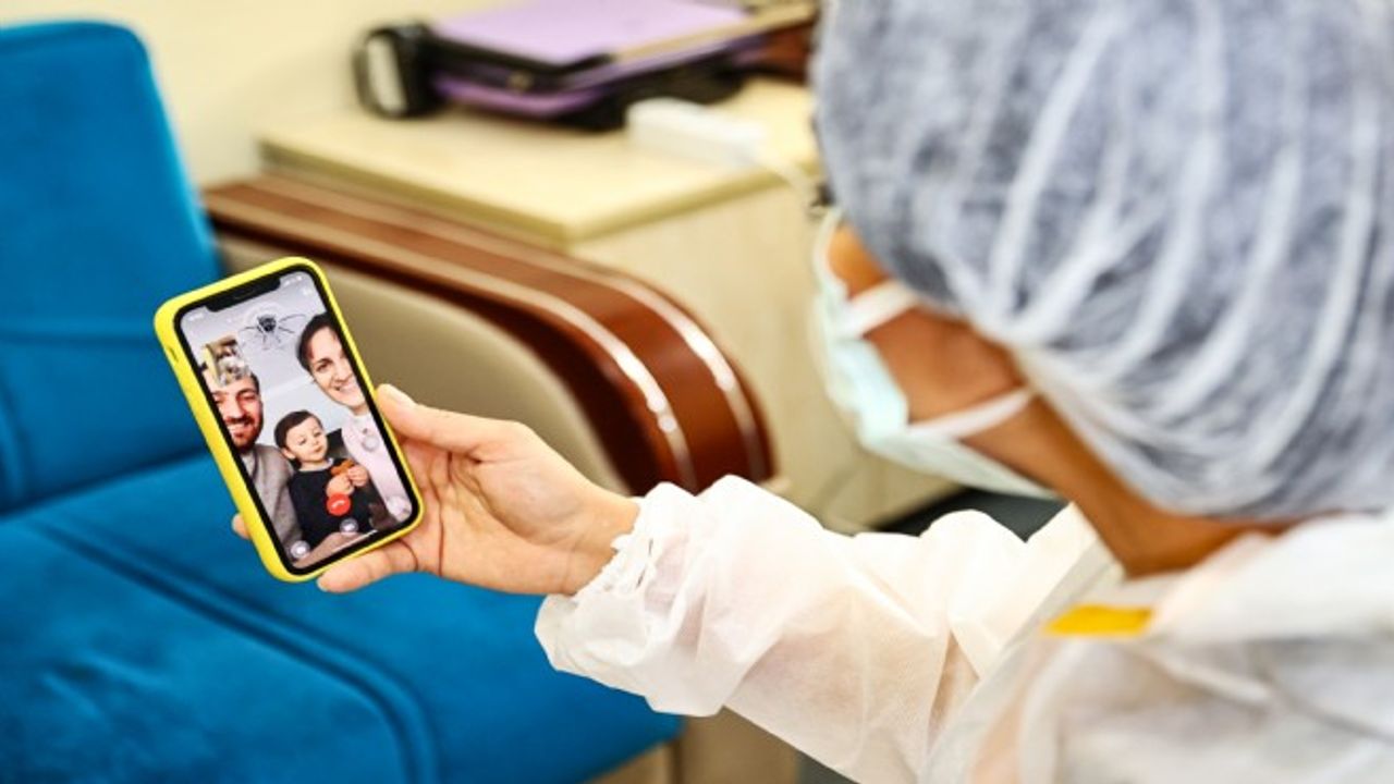 Çalışanlar, çocukları ve yakınlarıyla görüntülü konuşarak bayram sevincine ortak oluyor.