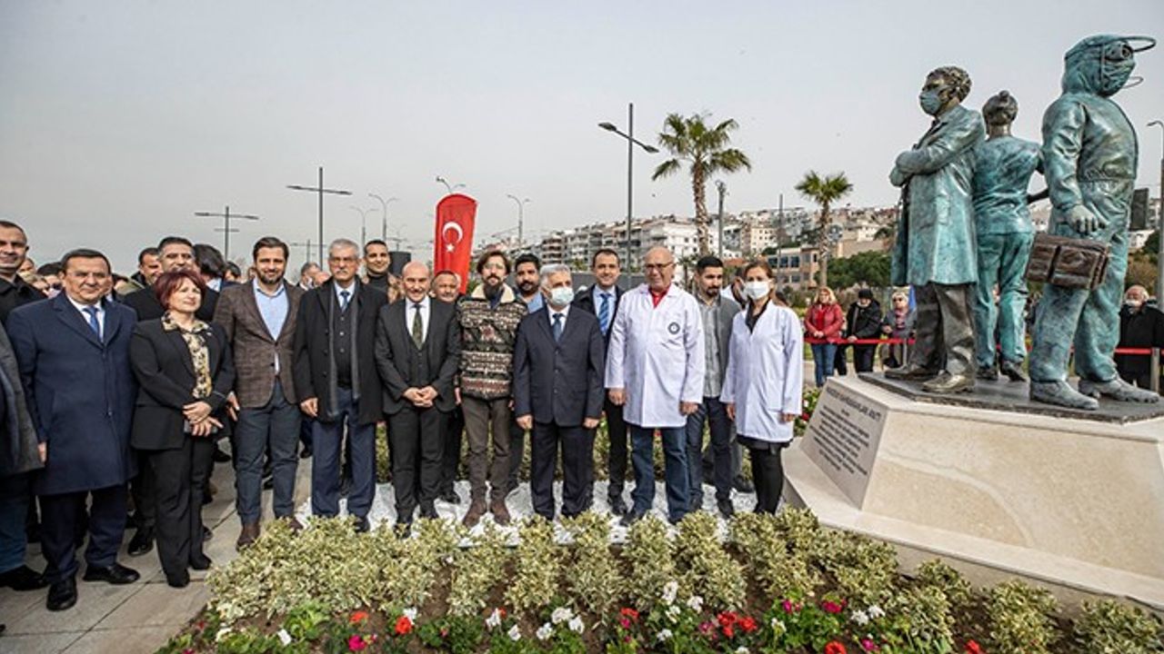 İzmir Büyükşehir Belediyesi Eşrefpaşa Hastanesi Başhekimi Op. Dr. Kadir Devrim Demirel ise pandemiyi çok ağır geçirdiklerini vurgulayarak 'Üç yıl önce hekimler bunun çaresini biz bulacağız demişti. Bilim bize aşıyı verdi. Ümitsiz değiliz' ifadelerini kullandı. Hemşireler Derneği İzmir Şubesi Başkan Yardımcısı Kazım Acar da anıt için emeği geçenlere teşekkür etti.
