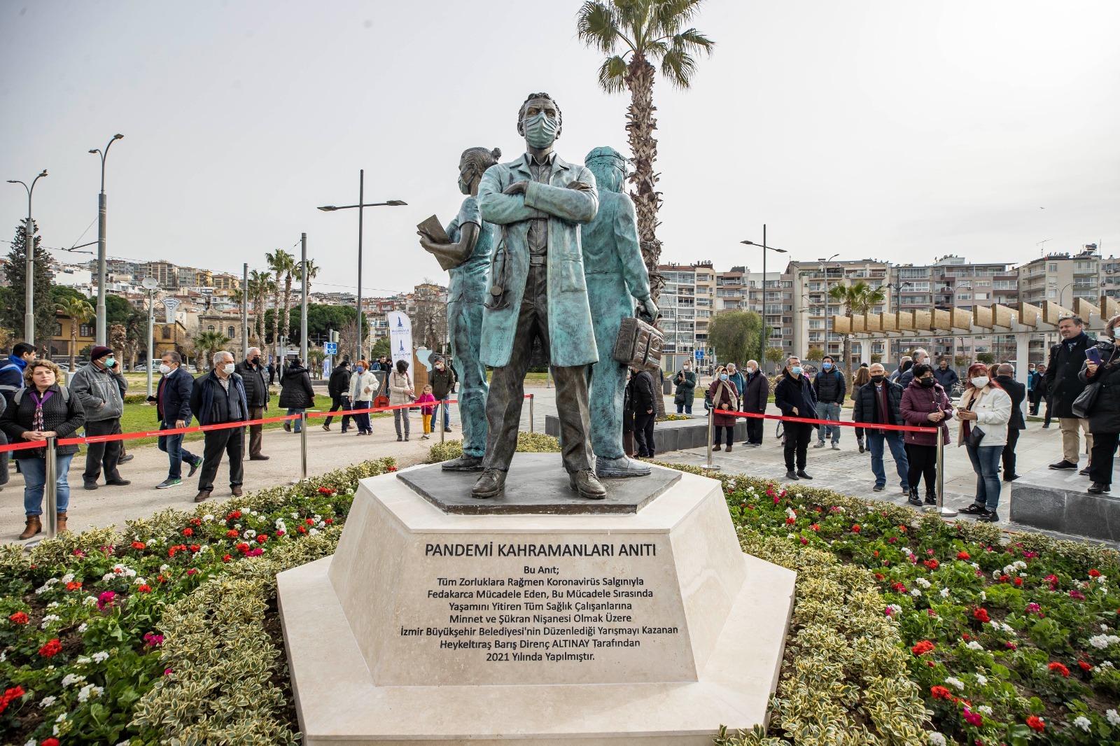 Anıtın projesini belirlemek için Eylül 2020'de Türkiye ölçeğinde bir yarışma düzenlediklerini ifade eden Başkanı Tunç Soyer, 'Jürimiz on bir eser arasından Barış Direnç Altınay'a ait bu projeyi seçti. Doktor, hemşire ve filyasyon ekibini temsil eden anıtımızın yapımına karar verildi' dedi.