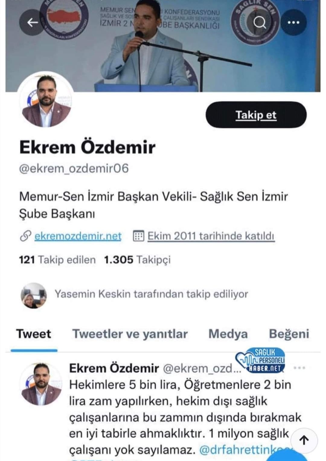 Sosyal medya hesabındaki paylaşımında, 2,5 yıldır Sağlık Sen Genel Merkezi tarafından şahsına aralıksız baskı, mobbing ve disiplin cezalarıyla yıldırmaya, sahalardan uzak tutulmaya, hile ve usulsüzlüklerle sistemin dışına atılmaya çalışıldığını öne süren Özgür Yıldırım, 'Suçum, FETÖ'ye hakaret etmem' dedi. 2 Nolu Şube Başkanı Ekrem Özdemir'in Cumhurbaşkanı Recep Tayyip Erdoğan ile Sağlık Bakanı Fahrettin Koca'ya 'Ahmak' dediği tweet'i paylaşan Özgür, FETÖ'ye hakaretten dolayı kendisinin cezalandırıldığını ancak iki devlet büyüğüne 'ahmak' diyen kişi hakkında işlem yapılmadığını öne sürdü. Ekrem Özdemir'in İzmir Memur Sen'e başkanvekili görevi vererek ödüllendirildiği iddiasında bulunan Özgür Yıldırım, sosyal medyadan yaptığı paylaşımda şu görüşlere yer verdi: