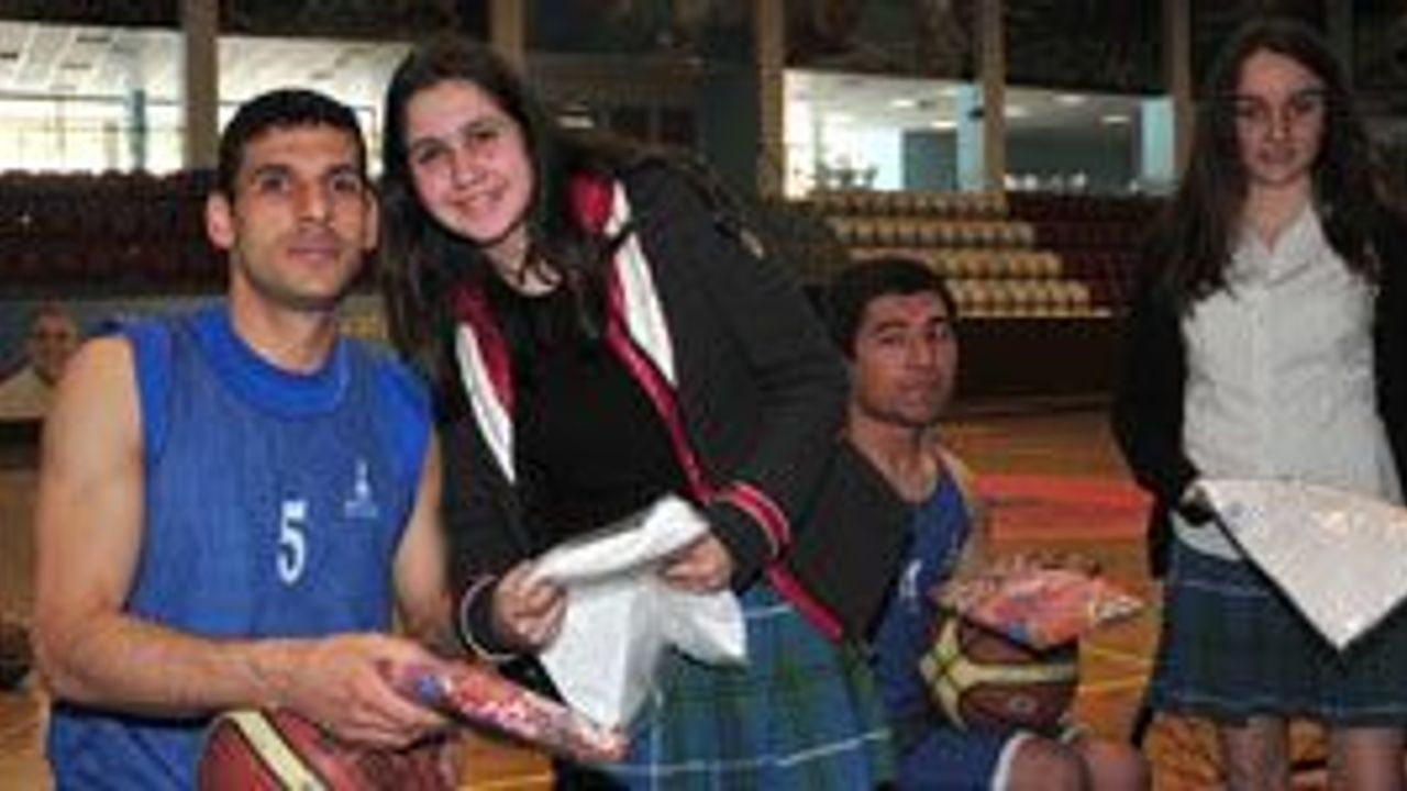 İZMİR - Saint Joseph Lisesi öğrencileri, beden eğitimi dersini Kültürpark Celal Atik Spor Salonu'nda engelli basketbolcularla birlikte yaptı. Antrenman sırasında ziyaret ettikleri İzmir Büyükşehir Belediyesi Tekerlekli Sandalye Basketbol Takımı oyuncularıyla tanışan öğrenciler, yıllardır İzmir'i Avrupa'da başarıyla temsil eden sporcularla sohbet etti.