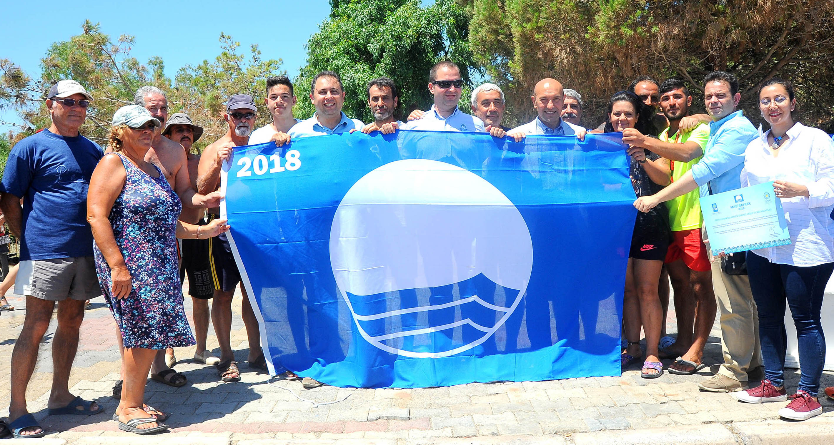 2018 yılı Mavi Bayrak teslim töreni 12 Haziran Salı günü Seferihisar Ürkmez Mahallesi Sağlık Ocağı Halk Plajı'nda yapıldı. Törende, Seferihisar'a 10 halk plajıyla beraber, Teos Marina ve bir özel işletmeye Mavi Bayrak verildi. 10 Halk Plajı'nın mavi bayrakları Seferihisar Belediye Başkanı Tunç Soyer, Teos Marina'nın bayrağı Marina Müdürü Faruk Günlü tarafından alındı.