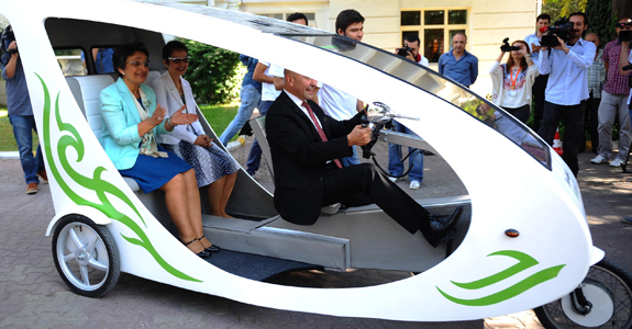 İZMİR - Ege Üniversitesi (EÜ) Ege Güneş Ekibi tarafından, hareketi için ihtiyaç duyduğu enerjiyi tamamen güneş enerjisinden karşılayacak üç tekerlekli taksi-bisiklet üretildi.