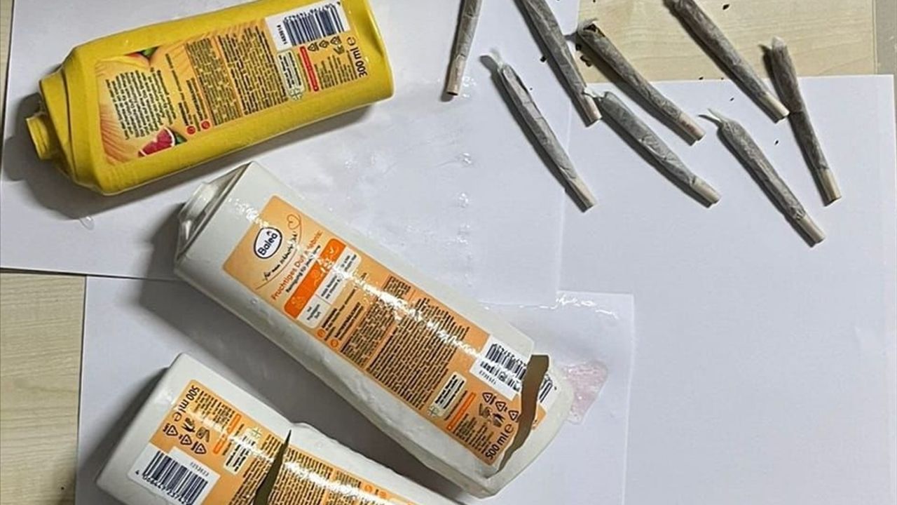 Kolideki aramalarda, şampuan kutularına gizlenmiş 11 gram esrar ele geçirildi.