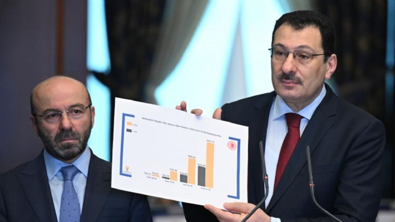 Yurt içi sandıklarda mesele ne olur? Geçen seçimde çok net bir şekilde 19.30 gibi neticeyi gördüğümüzü ifade etmek istiyorum. Dolayısıyla geçen dönem CHP'liler bilerek ya da bilmeyerek kafası karışık bir şekilde birtakım yoluna devam ettiği 25 saat yerine biz tam 2,5 saat sonra Türkiye'deki bütün neticelerin ne olacağına ilişki bir kanaate sahiptik. 49,5 ya da 49,6 olacağını gördük. Peki niye böyle ilan etmediniz derseniz, bu bizim verilerimiz. Her arkadaşımıza verdiğimiz bir çizelge var, bu çizelge üzerinden alıyoruz. Resmi hiçbir tarafı yoktur. Hem görevini ifade eden bir yazı var hem kimlerle irtibat kuracağını gösteren hem de bir çetele. Bunun hiçbir resmi tarafı yok.'