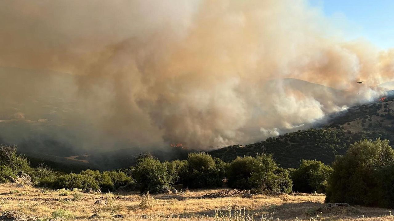 Ziyanlar Mahallesi Türkmen Tepe mevkiinde makilikte, dün saat 17.00 sıralarında henüz belirlenemeyen nedenle yangın çıktı. Rüzgarın da etkisiyle alevler geniş bir alana yayılıp, ağaçlık alana sıçradı. İhbar üzerine bölgeye, 4 helikopter, 3 uçak, çok sayıda arazöz ve iş makinesi ile Manisa Büyükşehir Belediyesi ve Eşme Belediyesi’ne bağlı ekipler sevk edildi. Alevlere havadan ve karadan müdahale edildi. Havanın kararmasıyla birlikte söndürme çalışmaları, yer ekipleri tarafından sürdürüldü. Alevler, rüzgarın da etkisiyle Uşak’ın Eşme ilçesi Eşmetaş köyü sınırına ulaştı. Eşmetaş köyünde 15, komşu Ağabey köyüne bağlı Sandal Mahallesi'nde 5 ev tedbir amaçlı tahliye edildi.