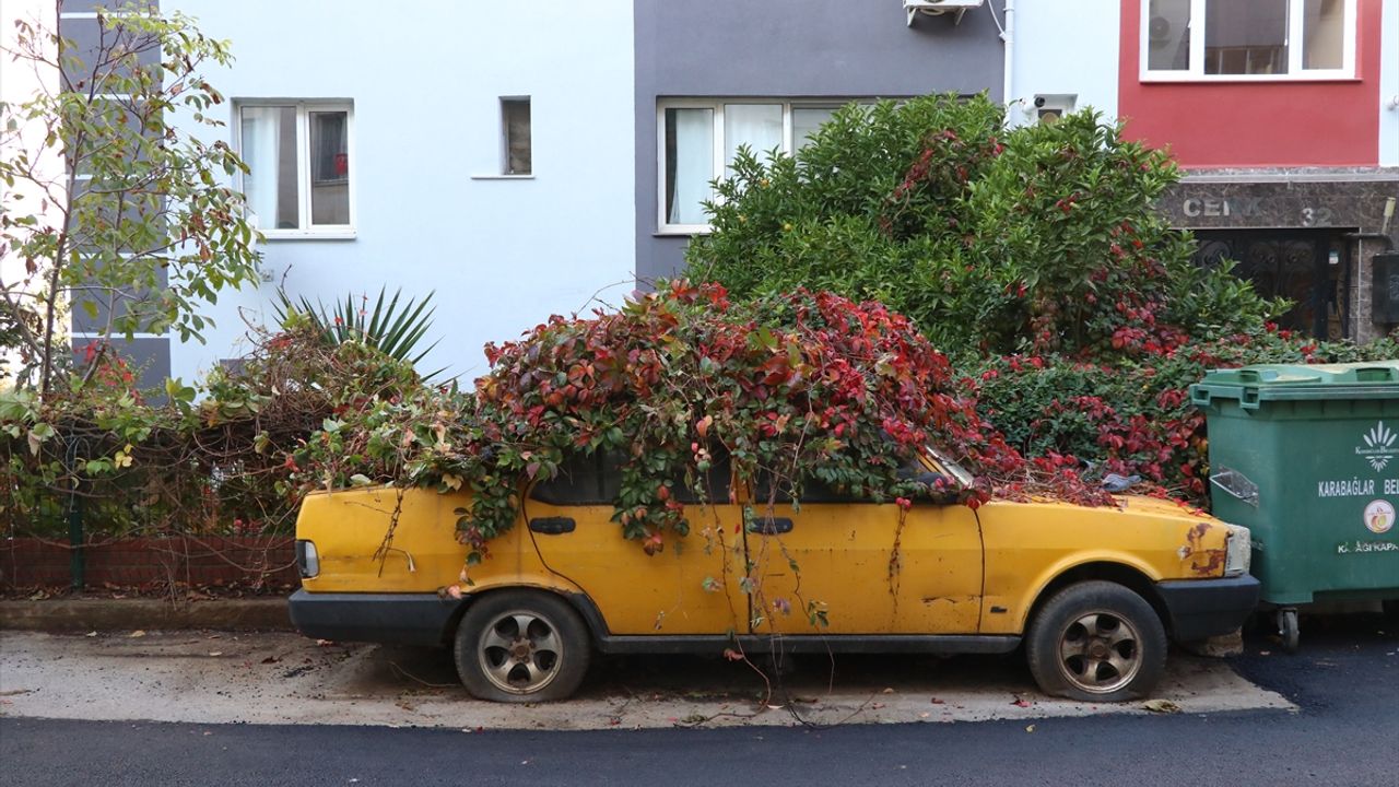 Üçkuyular Mahallesi'nde ikamet eden Mustafa Artun, AA muhabirine "Yaklaşık 3 yıldır burada yaşıyorum. Otomobilin üzerindeki sarmaşıklar daha kısaydı. Lastikleri de biraz şişikti ama son hali bu. Kaderini bekliyor." dedi.