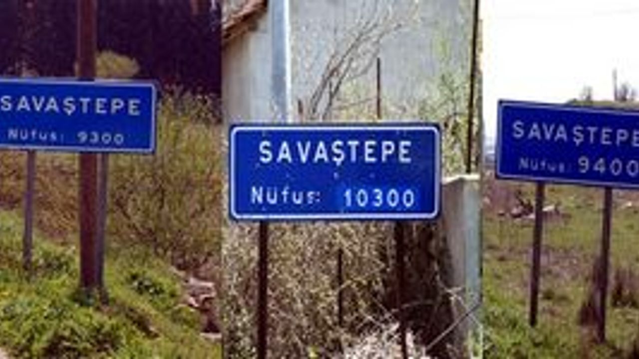 Balıkesir'in Savaştepe ilçesine gidenler Balıkesir'den girişte ilçe nüfusunu 9 bin 300 olarak görüyorken, Manisa'nın Soma ilçesinden girenler 9 bin 400, Savaştepe'nin Sarıbeyler beldesi yönünden girenler ise Savaştepe'nin nüfusunu 10 bin 300 olarak görüyor. Savaştepe'ye girişteki nüfus tabelalarının birbirini tutmaması herkesi şaşırtıyor. Bugüne kadar yetkililerin fark etmediği konu İHA muhabirlerinin objektifleri tarafından görüntülendi. Tabelalardaki farklılıkları görüp şaşıran Savaştepeliler ise ilçelerinin nüfusunun gerçekte kaç olduğunu merak ettiklerini söyledi.