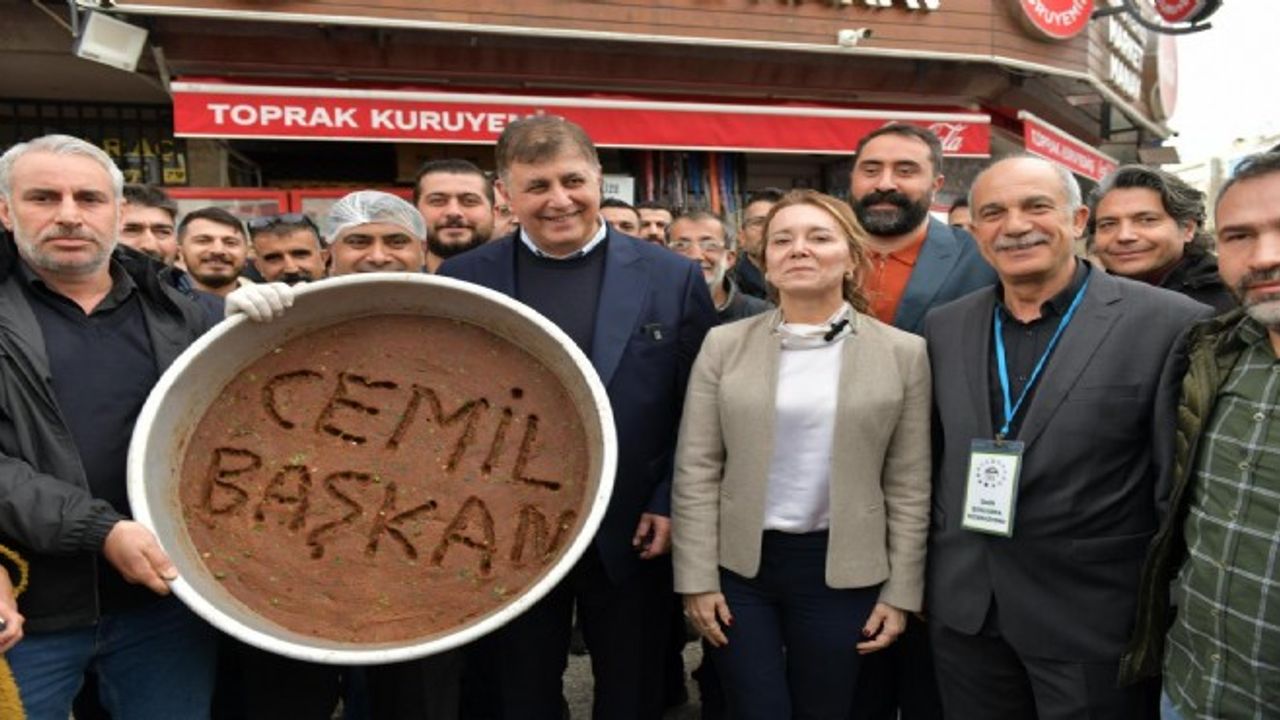 CHP İzmir Büyükşehir Belediye Başkan Adayı Dr. Cemil Tugay, İzmir Şanlıurfalılar Federasyonu, İzmir Bingöllüler Derneği ve Defne Eğitim ve Yaşam Derneği'ni ziyaret etti. Derneklerin başkanları, yönetim kurulları ve üyeleriyle bir araya gelen Tugay'a, Konak Belediye Başkan Adayı Nilüfer Mutlu, Bayraklı Belediye Başkan Adayı İrfan Önal, Bornova Belediye Başkan Adayı Ömer Eşki ve Karabağlar Belediye Başkan Adayı Helil İnay Kınay, CHP Konak İlçe Başkanı Ozan Ali İlgazi ve partililer eşlik etti. Şanlıurfalılar, Cemil Tugay'a üzerinde adının yazıldığı bir tepsi çiğköfte ile sürpriz yaptı. Tugay'a, Şanlıurfa'nın arkeolojik SİT Alanı Göbeklitepe'nin fotoğrafı hediye edildi.