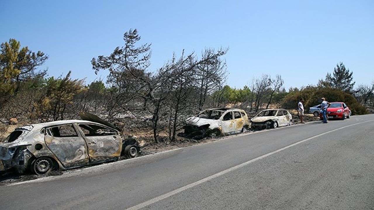 Aracını yol üzerinde park ettikten sonra arkadaşlarıyla plaja gittiğini ve yaklaşık 2 saat sonra duman yükseldiğini gördüğünü belirten Erbey, 'Koşarak park halindeki aracımın yanına gittim. Alevlerden dolayı araca yaklaşamadım. Hem benim aracım hem de başkalarının aracı yandı.' diye konuştu.