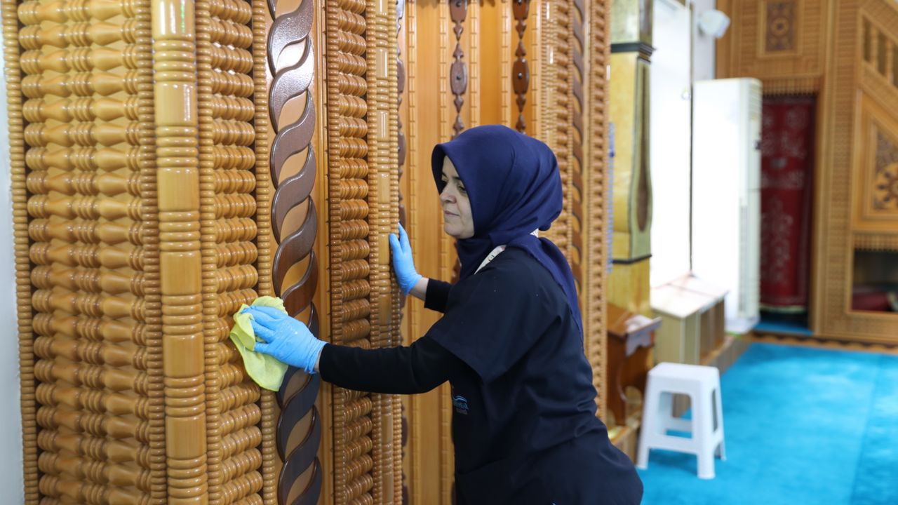 Caminin iç ve dış bölümlerinde genel temizlik yapılırken, camlar, mihrap, minber, avizeler ve ayakkabılıklar titizlikle temizleniyor. Ayrıca abdesthane ve tuvaletlerde de dezenfekte işlemleri uygulanarak vatandaşların sağlıklı bir ortamda ibadet etmesi sağlanıyor.