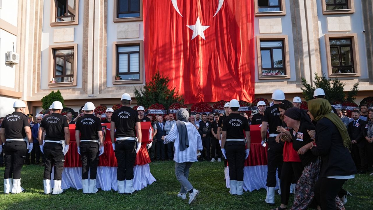 Şehit Şahin ve Ütni'nin Türk bayrağına sarılı tabutu, mesai arkadaşlarının omuzlarında Pamukkale ilçesindeki Denizli Orman Bölge Müdürlüğü bahçesine getirildi.
