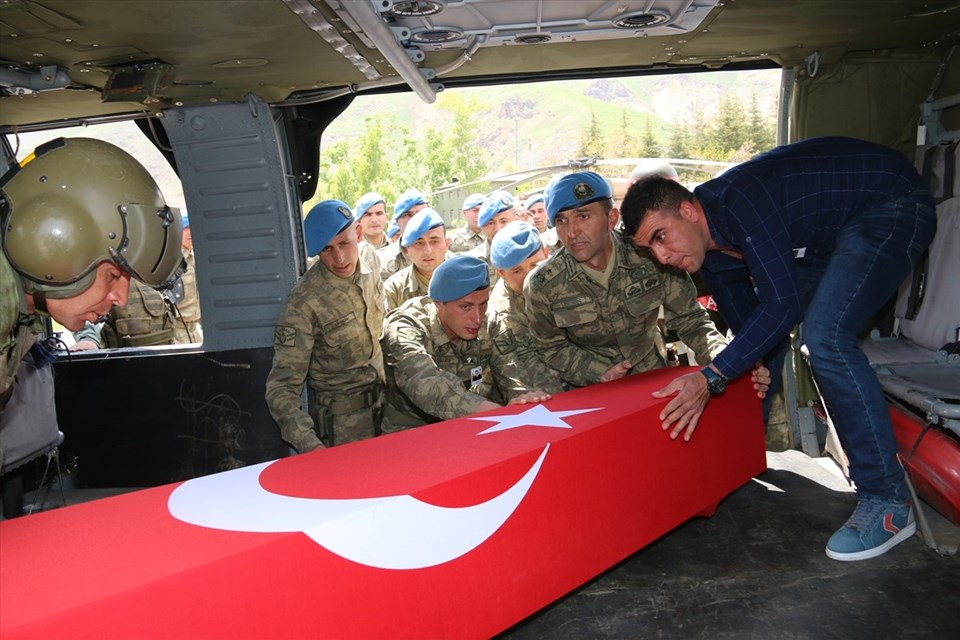 Tugay Komutanı Tayanç, şehidin ikiz kardeşi Peker'i teselli etmeye çalıştı. Kardeşinin naaşının taşındığı helikoptere binen Peker'e silah arkadaşları başsağlığında bulundu.