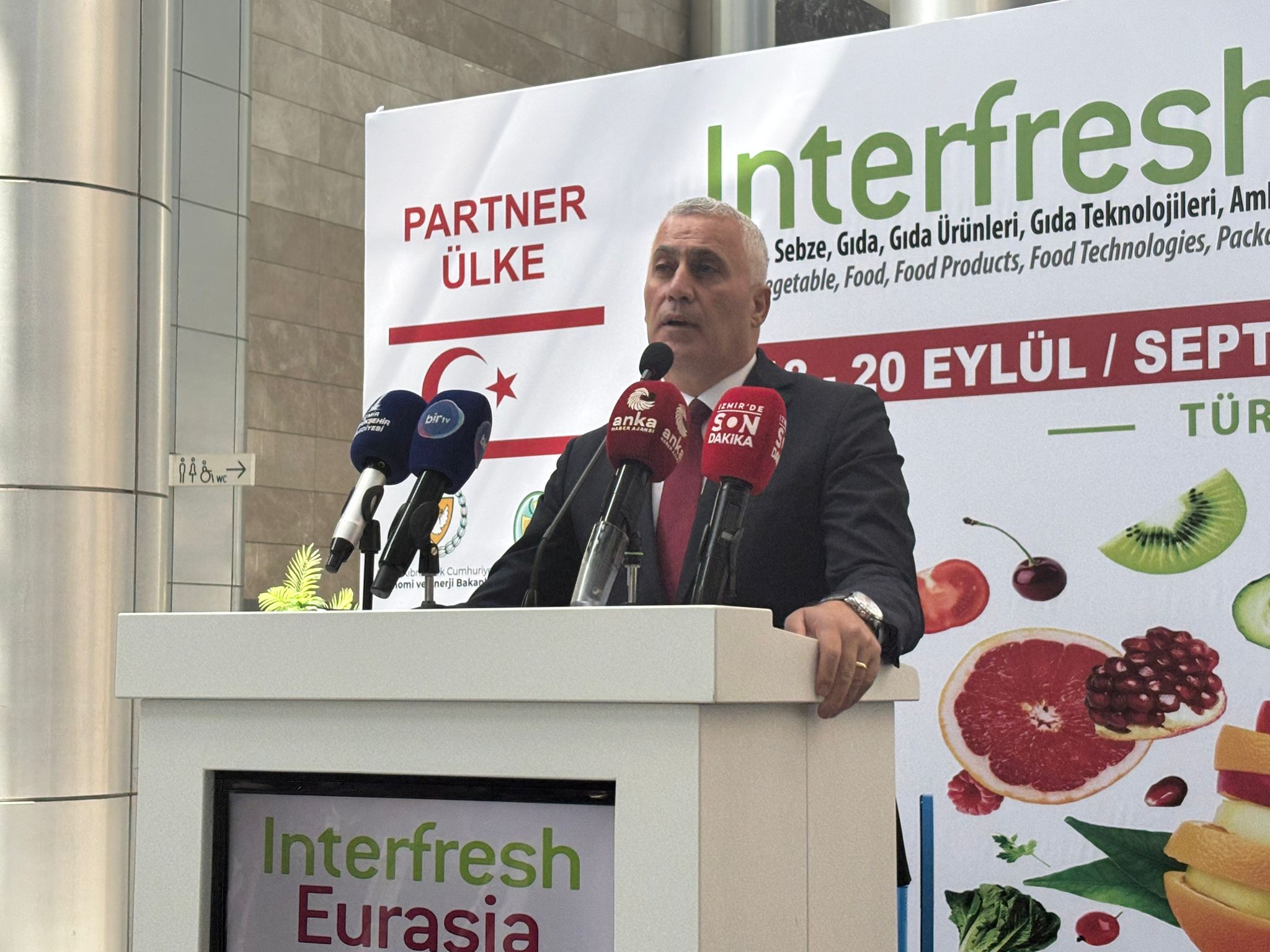 Ege Yaş Meyve Sebze İhracatçıları Birliği Başkanı Hayrettin Uçak, “Geçtiğimiz yıl ilk defa düzenlenmesine rağmen 14 bin ziyaretçiye ulaşan ve hızlı büyüyen fuarının bu yıl ziyaretçi akınına uğrayarak katılımcı sayısının 20 binin üzerine çıkmasını bekliyoruz. Hem üreticilerimiz hem de ihracatçılarımıza verdikleri desteklerle bakanlıklarımızın, valimizin ve vekillerimizin büyük emekleri var. Bu sene KKTC’nin fuarımıza katkılarından dolayı teşekkürlerimi sunuyorum” dedi.