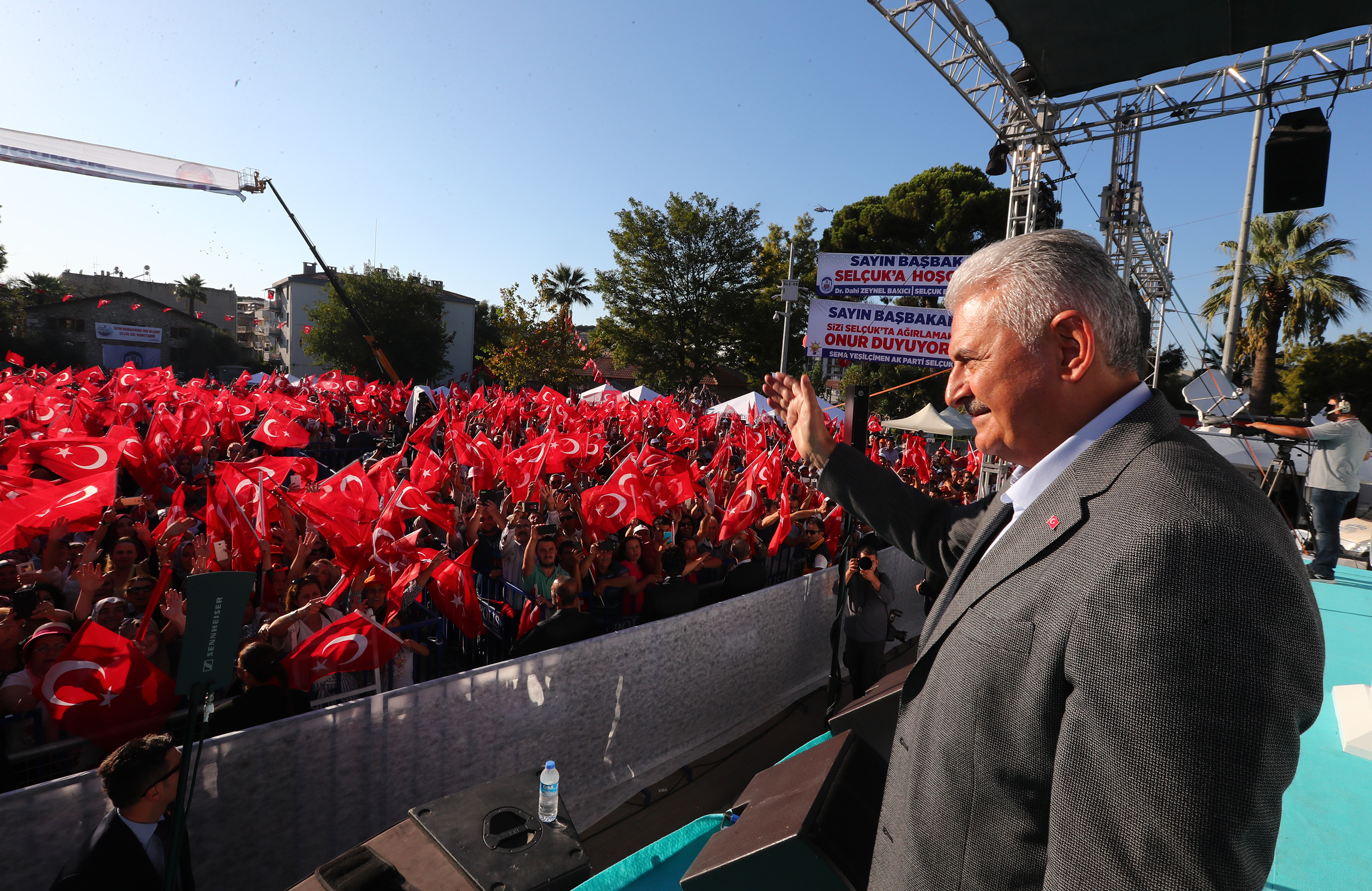 Başbakan Binai Yıldırım ise, 'Bugün Selçuk'a kazandırdığımız bir hizmetle geldik. Başkan neye sinirlendi? Demek ki hala Recep Tayyip Erdoğan sevgisine tahammül edilmiyor. Övgü onun olsun sevgi bizim olsun. Aziz Başkan'ın şekeri var. Birden şekeri çıktı vitesler attı' dedi.