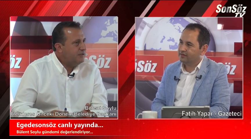 EGEDESONSÖZ- Menderes'in önceki dönem Belediye Başkanı Bülent Soylu, SonSöz TV'de gazeteci Fatih Yapar'ın sorularını yanıtladı.