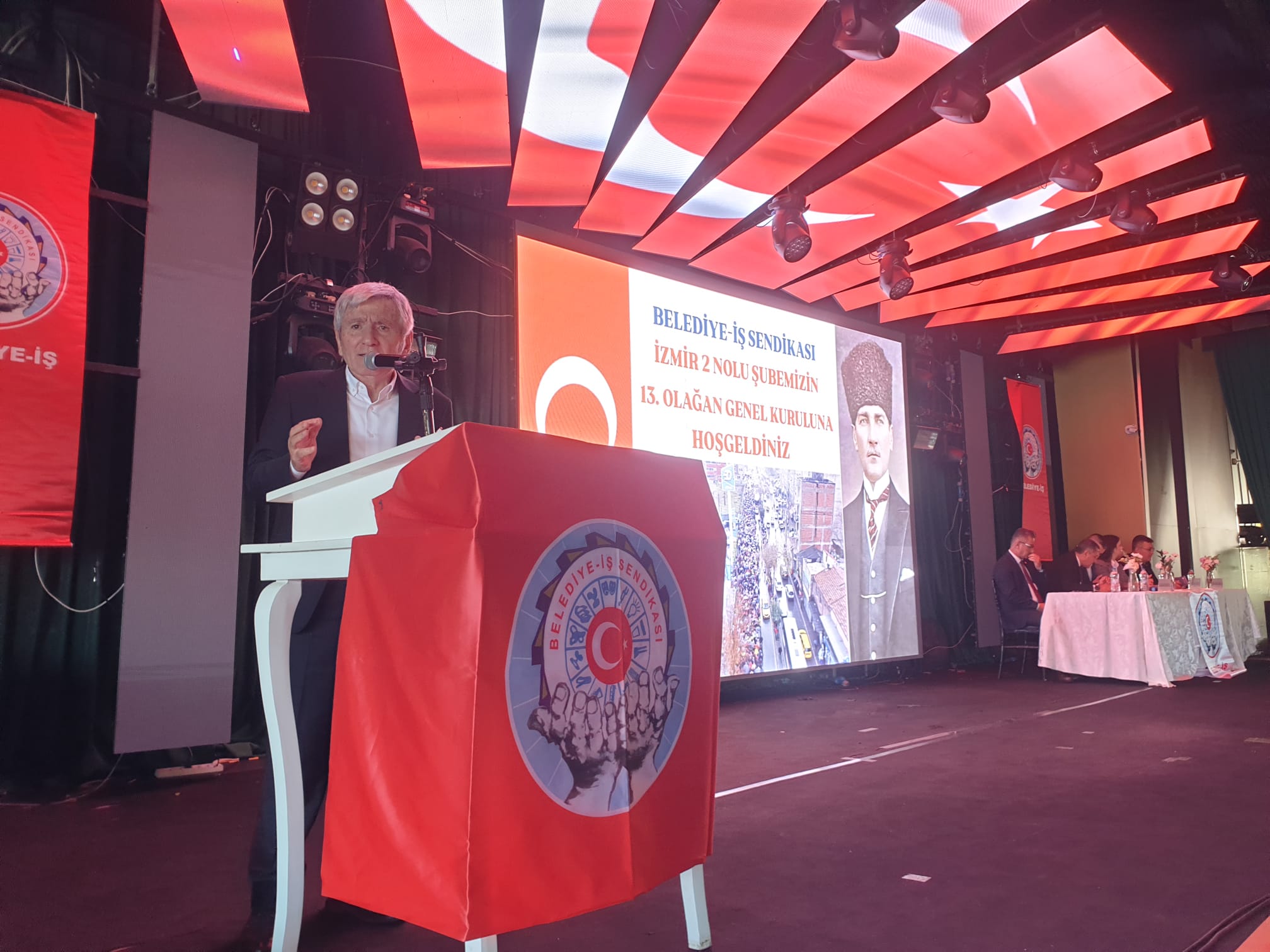 Evrensel'in haberine göre, İzmir Büyükşehir Belediyesinde kadrolu, İZSU, İZDOĞA şirketlerinde çalışan yaklaşık 4 bin işçi arasında örgütlü Türk-İş'e bağlı Belediye-İş İzmir 2 No’lu Şube 13. Olağan Genel Kurulunu gerçekleştirdi.