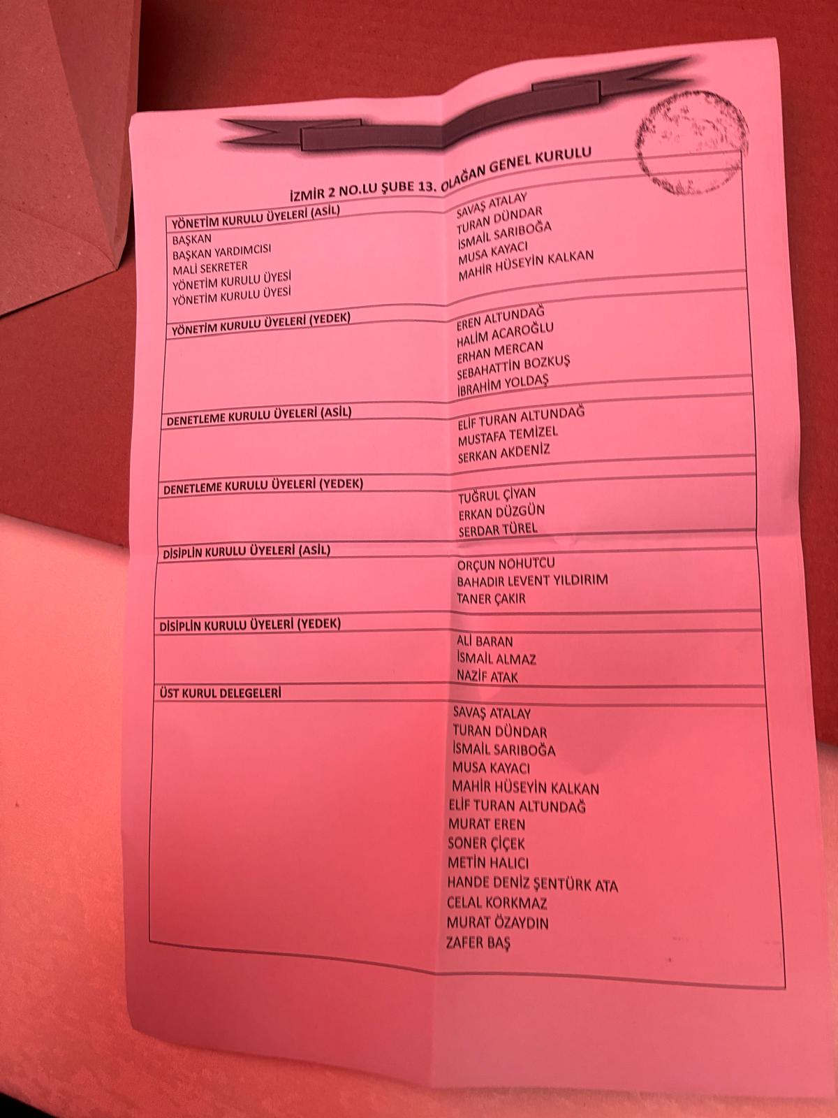Tek liste ile girilen seçimlerde mevcut Şube Başkanı Savaş Atalay yeniden seçildi. Yönetim kurulu şu isimlerden oluştu: Turan Dündar, İsmail Sarıboğa, Musa Kayacı, Mahir Hüseyin Kalkan.