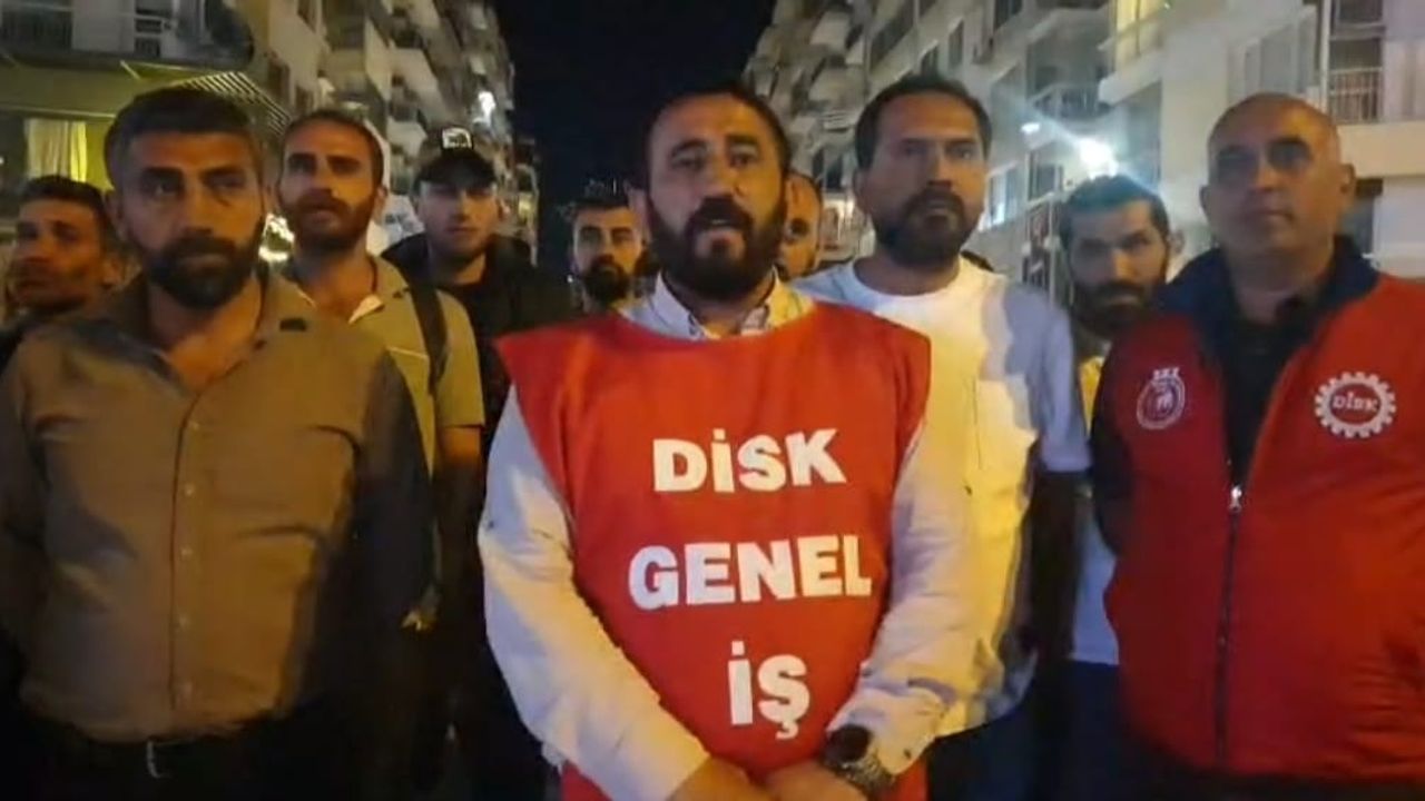 "Biz burada TİS’in sağlanamamasından dolayı 4 gündür grevdeyiz. Ve 3 gündür de İzmir Kordon Bölgesi ve Kıbrıs Şehitleri Caddesi’nde arkadaşlarımız ekmeğini büyütebilmek için çöpleri toplattırmıyorlar. Bizler de grevdeyiz, burada çöp toplanmasına müsaade etmiyorduk. Ancak bugün Kordon’a geldiğimizde İzmir Büyükşehir Belediye Başkanı Sayın Cemil Tugay, Katı Atıklar Daire Başkanı, Katı Atıkların Şefi, Katı atıklardaki formenler bugün bizim toplatmadığımız çöpleri topladılar.