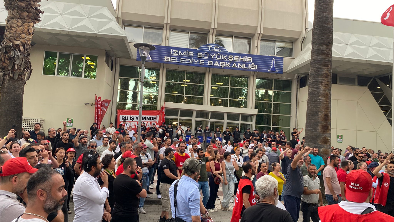 “Ne yapacağız diye konuşmak için bir araya geldik. Bugün uzun bir yolculuk yaptık birlikte. Konak’tan Gündoğdu Meydanı’na bir yürüyüş yaptık. Yorulduk ama birlikte olduğumuz için yorulmadık, devam ettik. Önümüzde uzun bir yol var. Bizi şaşırtırlar, erkenden taleplerimiz yerine gelir o ayrı ama uzun bir yolculuk olduğu belli. Onun için sizleri yormadan burada bir program hazırlamak zorundayız. Yarın Konak’ta bulunan İZSU’nun önünde saat 10.00’da toplanacağız. O saate kadar çağrılar gelirse, gece yarısı da gelse biz yönetim kurulu olarak gidip sizlere bunun bilgisini vereceğiz. Herhangi bir görüşme talebi geldiğinde en kısa sürede bilginiz olur. Dün sizlere belediyede kesinti olacağını söylemiştik. Belediye tarafından yetkili bürokrat söyledi. Az önce toplantı yaparken mali işler daire başkanı ve genel sekreter yardımcımızın yanına çıktık, maaşlarla ilgili durum nedir diye. Bize bu ay bayramdan önce maaşlarımızı ve mesailerimizi yatıracaklarını söylediler.