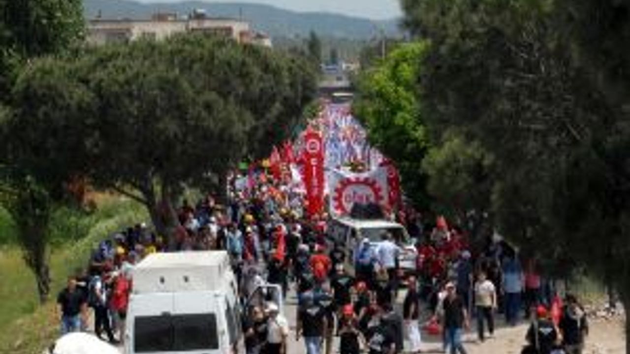 Kortejin alanı doldurmasının ardından konuşma yapan KESK Eş Genel Başkanı Şaziye Kaya, 'Mayamız, acılarımız, çilekeşliğimiz aynı. Azgın sömürü çarklarında, dünyada milyonlarcasını Soma kara deliklerinde 301 tanesini, Ermenek'te, inşaatlarda tersanelerde onlarcasını daha fazla kar uğruna yitirdiğimiz ve yitirmeye devam ettiğimiz sınıf kardeşlerimin anıları önünde saygıyla eğiliyorum' dedi.