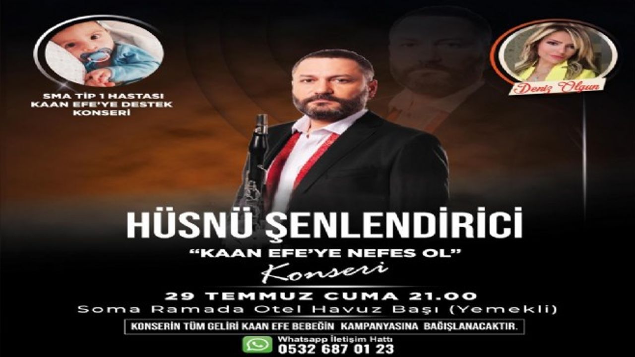 ' Tüm operatörlerden 'KAAN EFE' yazıp 6201'e göndererek, İnstagram üzerinden @kaanefeyenefesol sayfasını takip ederek ve bağış için düzenlenen canlı yayınlara da katılarak yavrumuza destek olabilirsiniz. Valilik izniyle başlatılan bu kampanyada Kaan Efe için birlikte el ele vererek başaracağız. Sen varsan, umut var.' dedi.Kampanya kapsamında Ünlü klarnet virtüözü Hüsnü Şenlendirici Kaan Efe bebeğe nefes olacak. Soma Ramada otelde 29 Temmuz Cuma günü gerçekleşecek Kaan Efeye Nefes ol konserinin Bilet satışından elde edilecek gelir Kaan Efe bebeğin kampanyasına bağışlanacak.