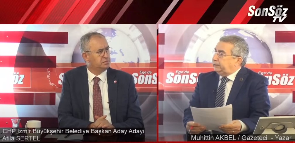 EGEDESONSÖZ – CHP İzmir geçmiş dönem Milletvekili ve İzmir Büyükşehir Belediye Başkan aday adayı Atila Sertel, SONSÖZ TV'de Gazeteci yazar Muhittin Akbel'in sorularını yanıtladı. Kurultay öncesi Kemal Kılıçdaroğlu'nu desteğini açıkça ifade eden Sertel, Özel ile dostluğunun milletvekili olmadan öncesine dayandığını anlattı. Sertel, aday adaylık başvurusundan sonra Ankara'ya gitmediğini, önümüzdeki süreçte de gitmeyeceğini belirterek, 'Beni aday yapın, demek için partiye gitmem' açıklamasında bulundu.