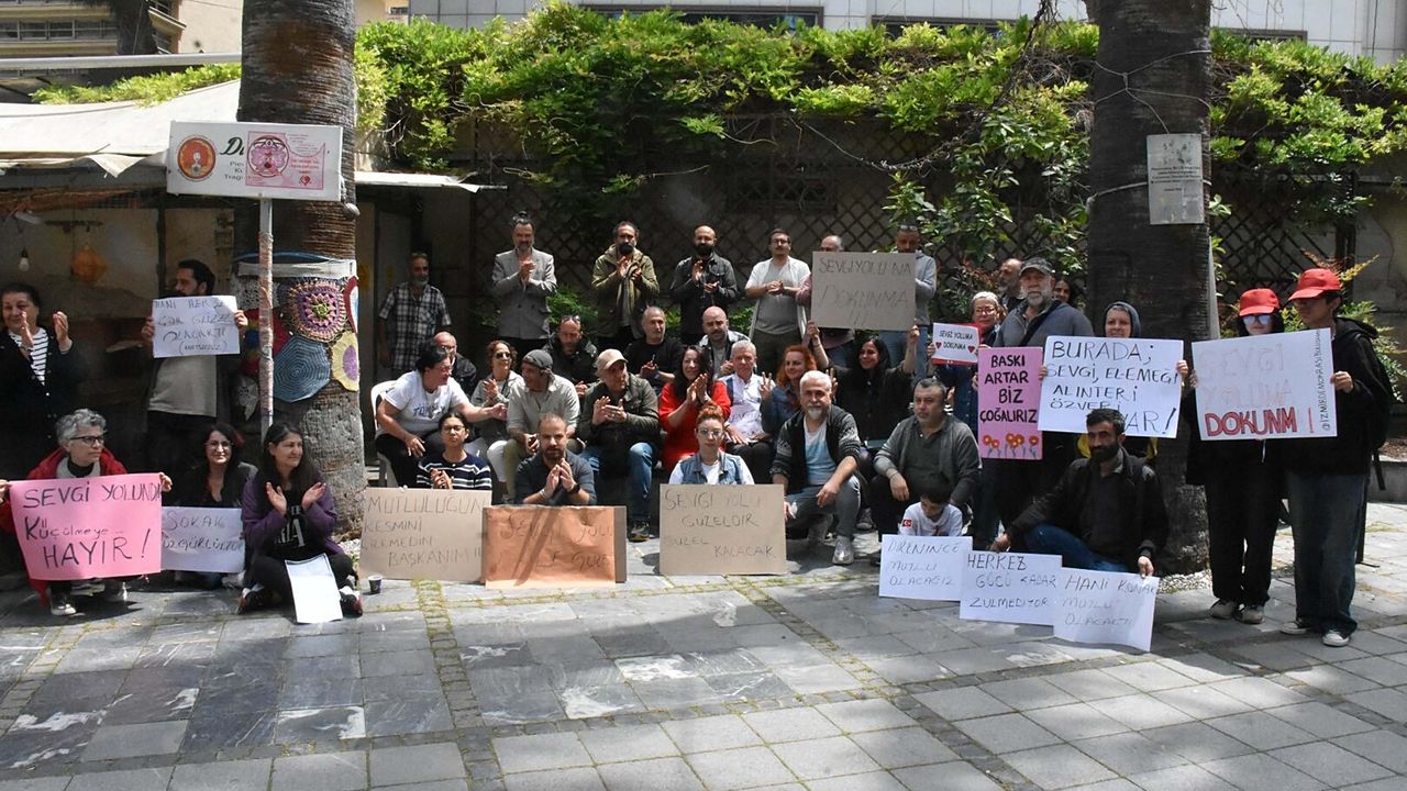 Konak ilçesinde bulunan Alsancak Sevgi Yolu'ndaki esnaf, Konak Belediyesi tarafından kendilerine kamuya ait alanların işgal ettikleri gerekçesiyle 15 gün içinde tezgah alanlarını daraltmaları gerektiği yönünde tebligat gönderildiğini belirtip, duruma tepki gösterdi. Belediyenin kararına karşı çıkan yaklaşık 80 esnaf, öğle saatlerinde kepenk kapatarak eylem yaptı. Esnaf, 'Sokak mutsuz başkanım', 'Hani Konak mutlu olacaktı' yazılı pankartlar açarak, alkışlarla Konak Belediye Başkanı Nilüfer Çınarlı Mutlu'ya seslendi. Dükkanlarının güvenliğini sağlamak amacıyla 4 yıl önce yaptıkları demir kafeslerin de kaldırılmasının istendiğini belirten esnaf, bu durumun mağduriyet yaratacağını söyledi. Sevgi Yolu'nda 10 yıldır esnaflık yaptığını belirten Özge Yıldız (37), "Esnafa verdikleri alan çok küçük, hiçbir şeyimizi sergileyemeyiz, halihazırda zaten iş yapamıyoruz, daha çok mağdur olacağız. Geri çekilmemizi istedikleri alanın işgaliyesini alıyorlar. Yaklaşık 4 yıldır bu alanın işgaliyesini veriyoruz. Güvenlik açısından daha önce çok sorun yaşadık, hepimizin en az bir kere mağduriyeti var. Alanım şu an kapalı değil. Sabahları dükkanımın önünde içki şişeleri, şırıngalar buluyorum. Bu nedenle dükkanlarına demir kafes yaptıran arkadaşlarım haklı" dedi.