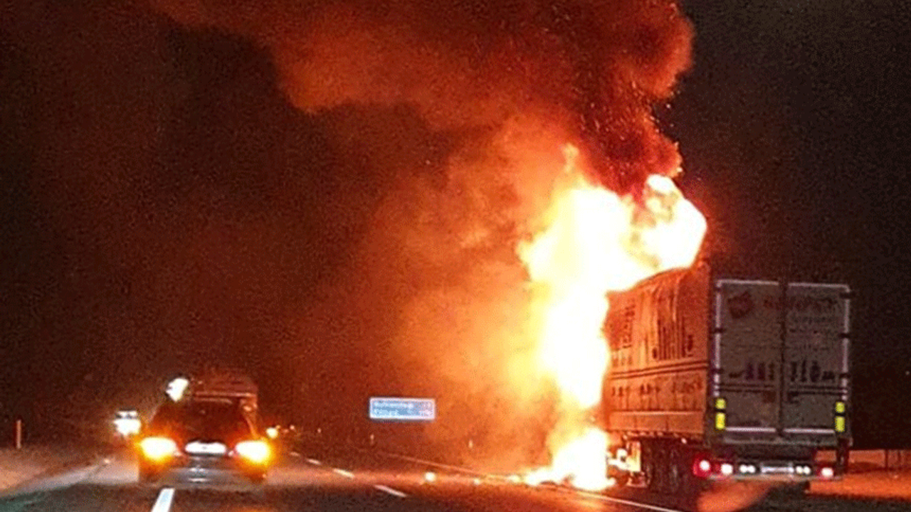 Sürücüsü ve plakası henüz bilinmeyen tırın dorsesi, Afyonkarahisar - Konya kara yolunun Eber köyü yakınlarında seyir halindeyken henüz belirlenemeyen nedenle alev aldı.