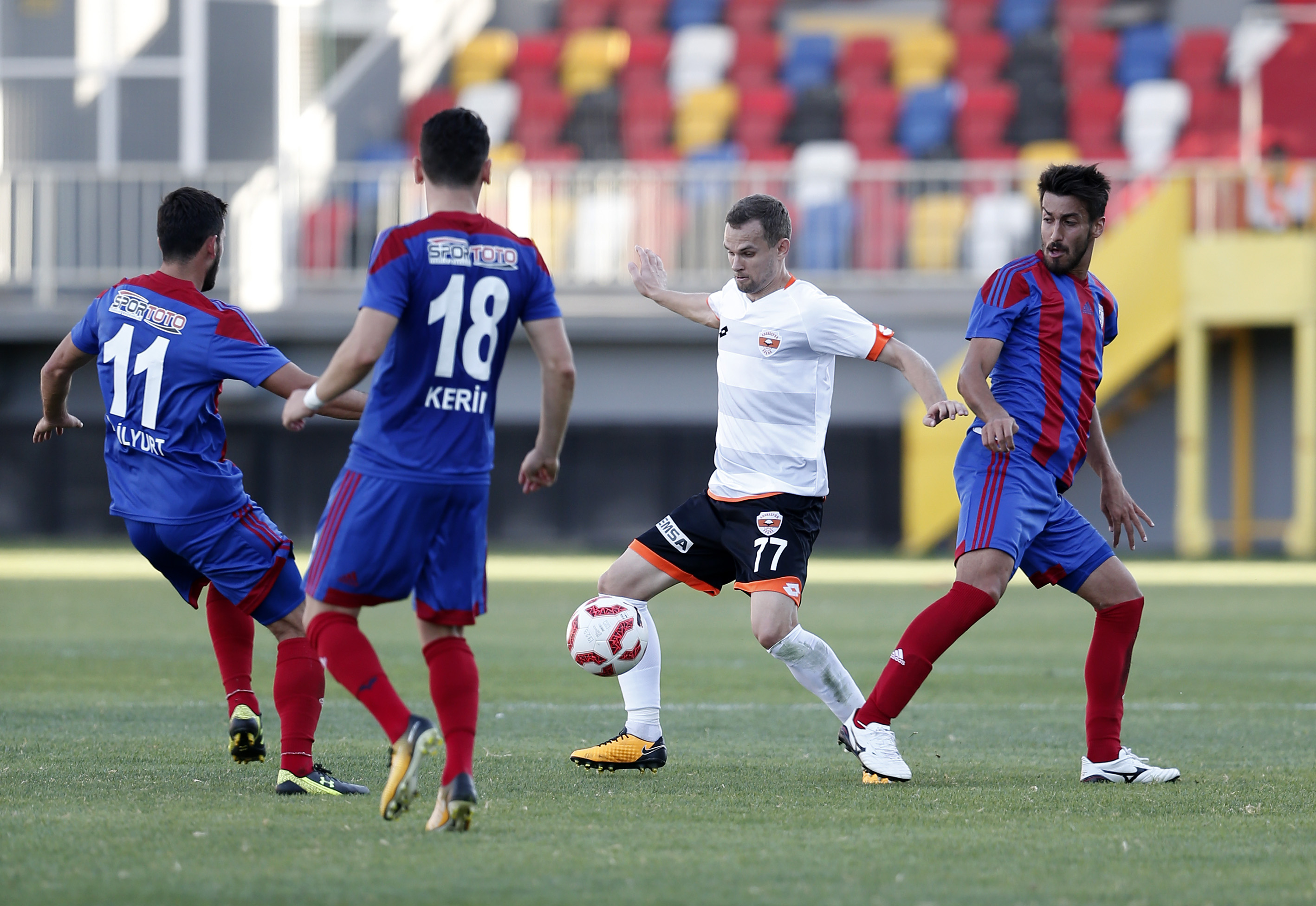 61. dakikada Adanaspor kontratağında sağdan ceza sahasına giren Bahattin, kaleci Erce'den sıyrılıp vurdu, top yan ağlarda kaldı.