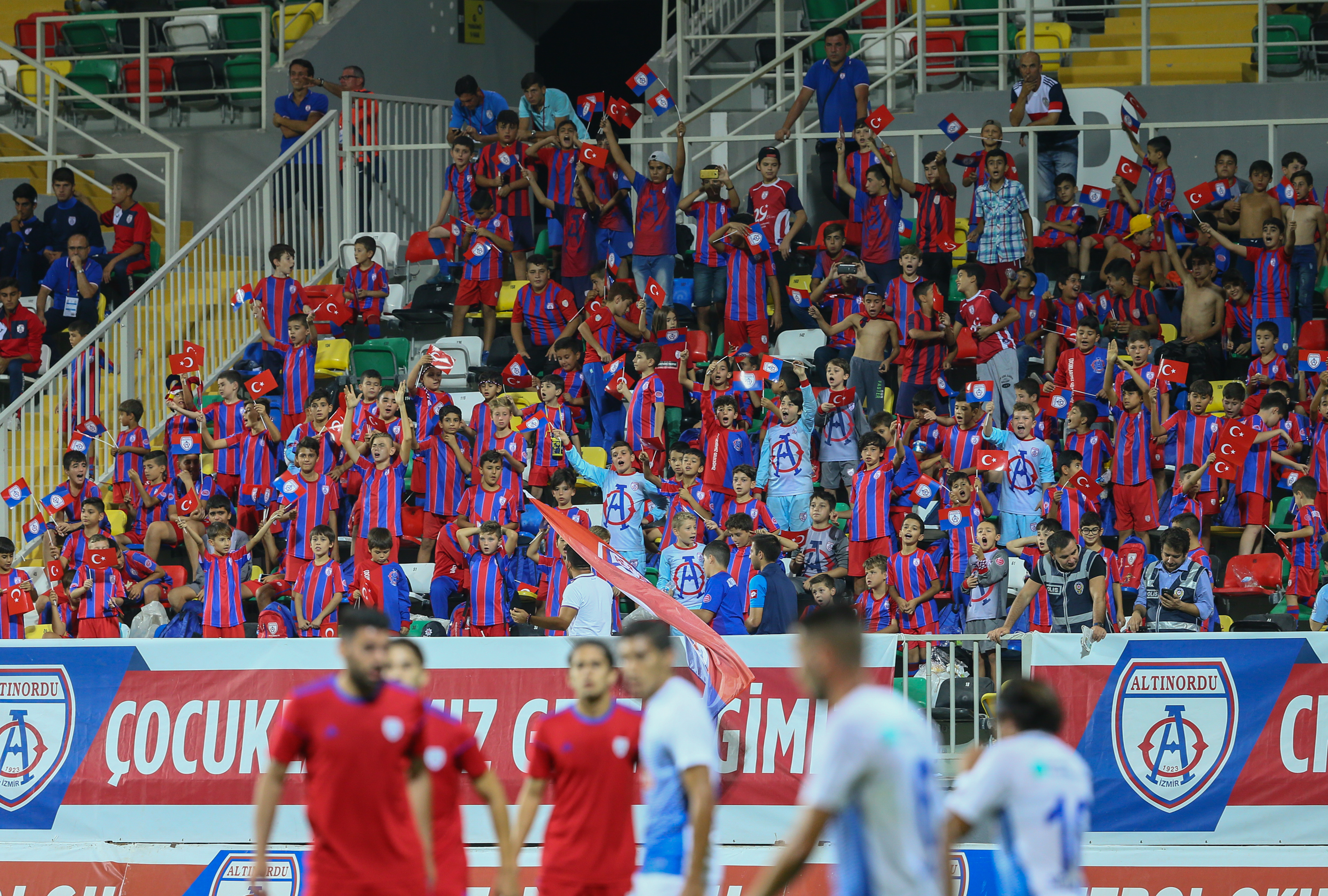 Ev sahibi takımı açık tribünde yaklaşık 750 spor okulu öğrencisi büyük coşkuyla destekledi. Altınordu yönetiminin bu sezon uygulamaya koyduğu 'Çocuk tribünü' projesi tribünlerde renkli görüntüler oluşturdu. Minik Altınordulular ellerindeki pankart ve bayrakları sallayarak ağabeylerine destek verdi.