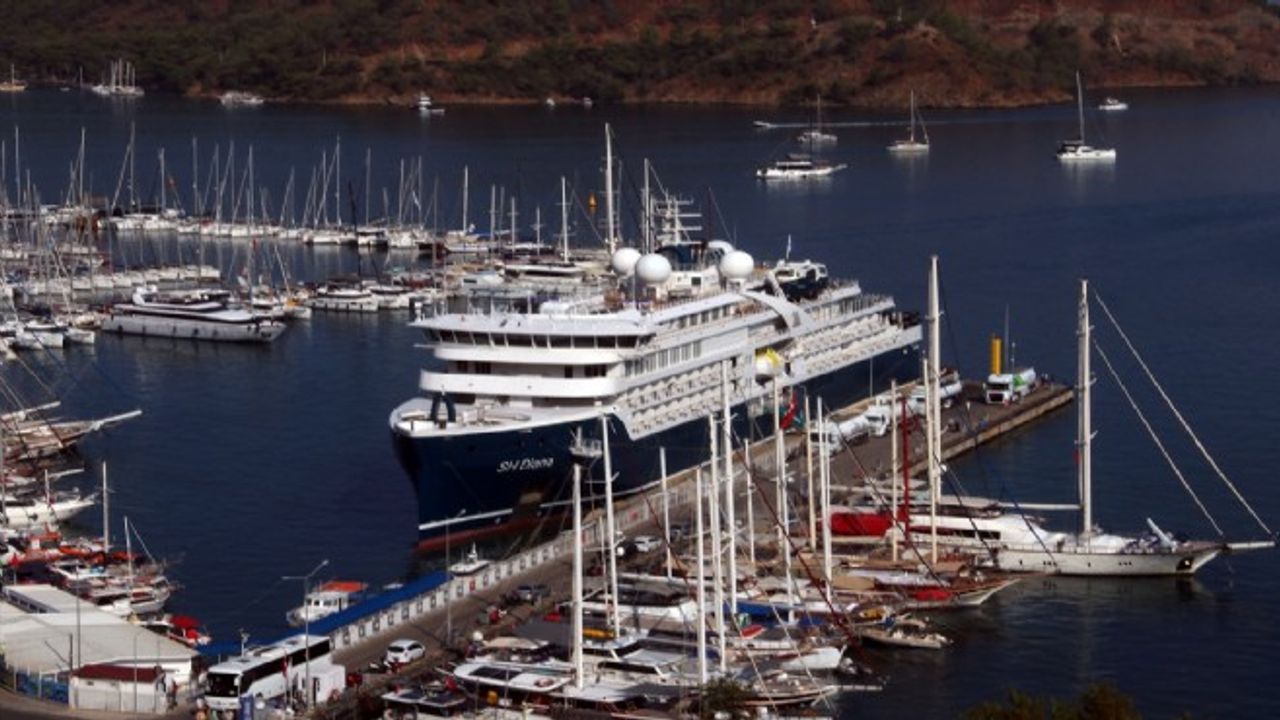 Meis Adası'nın ardından rotasını Fethiye'ye çeviren 125 metre uzunluğundaki 'SH Diana' isimli yolcu gemisi, sabah saatlerinde Fethiye Limanı'na yanaştırıldı.