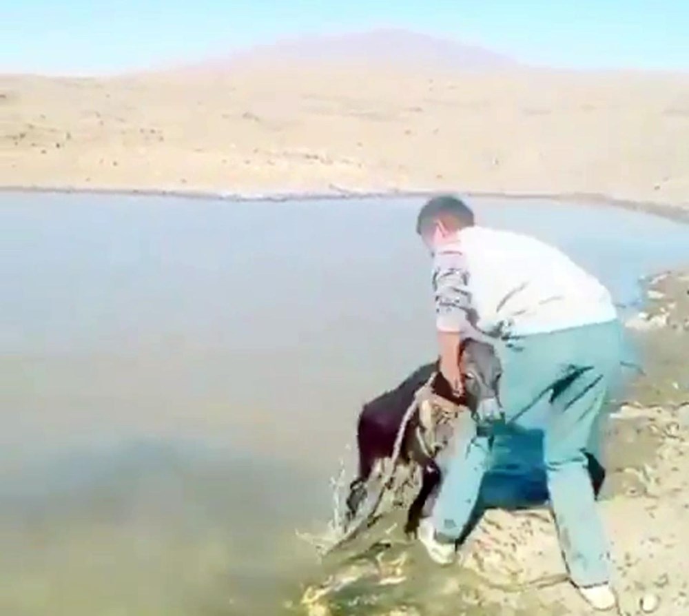 Digor ilçesine bağlı Alem köyünde 2 kişi, boynuna ip bağladıkları sıpayı göle attı. Yavru eşeğe eziyet ederek eğlenen 2 kişi, cep telefonuyla çektikleri görüntüleri de sosyal medya hesaplarından paylaştı.