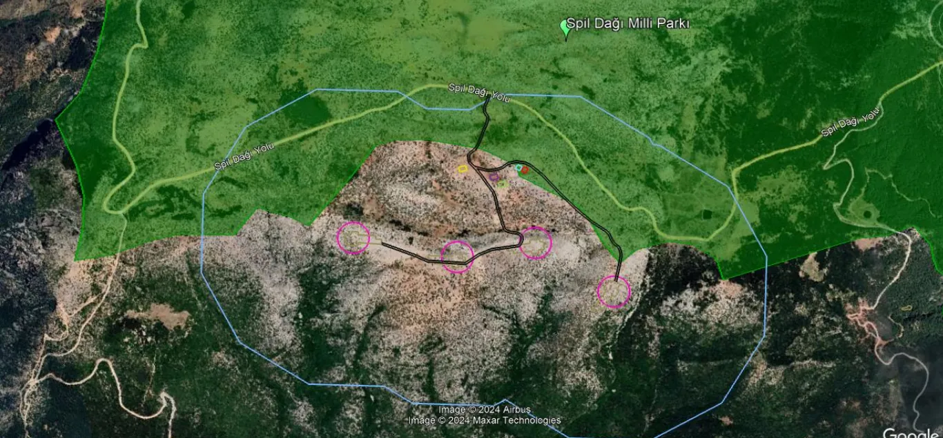 420 hektarlık santral sahası İzmir-Manisa İli 1/100.000 ölçekli Çevre Düzeni Planı’na göre orman sınırlarında kalıyordu. ÇED sahasının bir kısmı ise Spil Dağı Milli Tabiat Parkı sınırlarında yer alıyordu.