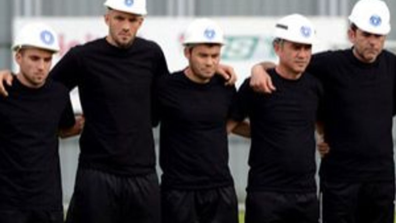 Yeşil-beyazlılarda teknik ekip ve oyuncuları, Soma'da yaşanan ölümlere üzüntülerini dile getirmek için antrenmana siyah forma ve madenci baretiyle çıktı.