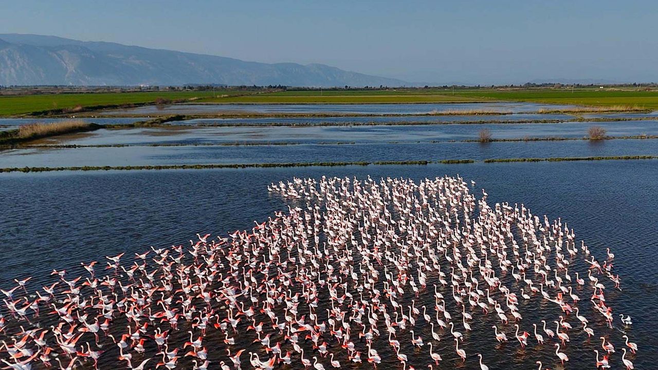 Aydın'da son dönemde etkili olan sağanak, Sarıçay ve Büyük Menderes Nehri'nin su seviyesinin yükselmesine neden oldu. Debinin yükselmesiyle birlikte Söke ilçesinin kırsal Kalcık Mahallesi’nde yerleşim yerleri ve ekili alanları su bastı. Mahallede tarım ve hayvancılıkla uğraşanlar olumsuz etkilendi. Bölgede su kuşlarının beslenmesi için yeni alanlar oluştu. Ekili alanlardan suların çekilmesiyle özellikle flamingolar bölgeyi mesken tutmaya başladı. Su altında kalan tarım arazilerinde beslenen ve sürü halinde uçan flamingolar dron ile görüntülendi.
