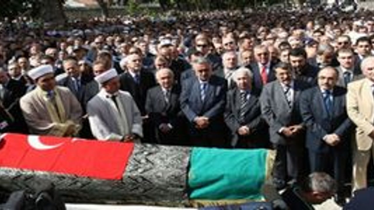 Cenazeye katılanlar, giriş kapılarında polisin yaptığı aramalardan sonra avluya alındı. Kabe'nin eski örtülerinden bir parçasıyla örtülen tabuta, bir vatandaş tarafından Türk Bayrağı serilmek istendi. Türk Bayrağı, çevredeki vatandaşların da yardımıyla toplu iğneyle tabuta tutturuldu.
