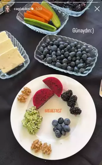 Tüm bu dikkat çeken paylaşımların ardından, Çağla Şıkel'den yeni bir kahvaltı paylaşımı daha geldi. Bu kez meyve ağırlıklı bir tabak tercih eden ünlü isim, yine sosyal medyada geniş yankı uyandırdı.