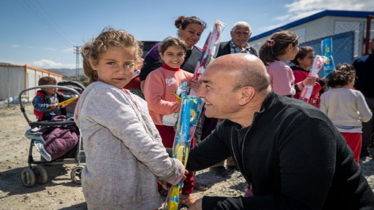 Başkan Tunç Soyer, 'Hatay'dayız, İzmir Büyükşehir Belediyesi Fen İşleri Dairesi Başkanlığı'nın montajını tamamladığı konteynerlerdeyiz. Büyük ölçüde yerleşime hazır hale getirilmiş durumda ama mefruşatla ilgili, mobilya ile ilgili eksiğimiz var. O nedenle ben yine İzmirlilerin yüce vicdanına seslenmek istiyorum. Karyola, yatak, komodin, dolap gibi birçok malzemeye ihtiyaç var. Özellikle şofben ve klima yaz ve kış aylarında en temel ihtiyaçlardan biri olarak görülüyor. Bunları bir an önce tamamlamayı ve bayramdan önce bitirmeyi hedefliyoruz. İzmirliler de depremzedelere bir bayram hediyesi vermek istiyorlarsa konteynerlerimizin eşyalarına katkı koyabilirler. Mobilya ile ilgili tüm bağışlamak istedikleri malzemeyi Umut Hareketi sayfamızda bulabilirler. Hangi ürünleri ne kadar bedelle satın alabileceklerini görecekler. Bayram hediyesi vermek için tüm İzmirlileri bu kampanyaya katılmaya davet ediyorum' dedi.