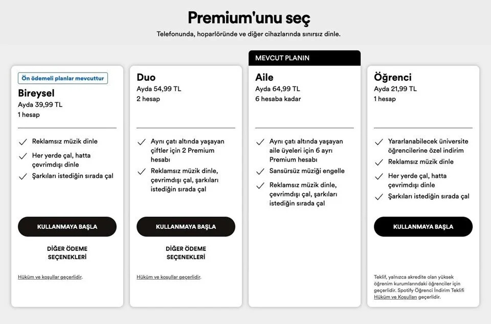 Spotify, bu zamların ardından Türkiye'de de Premium fiyatlarını artırdı.