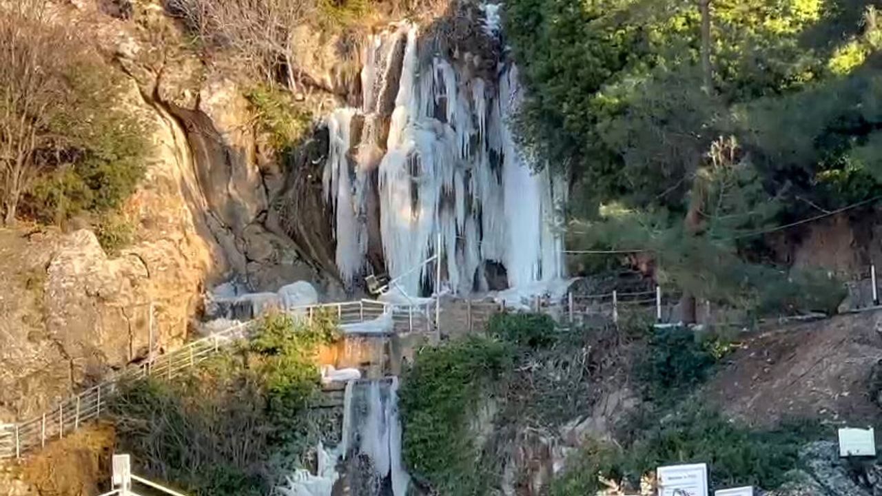 Dinar'da son dönemde hava sıcaklıkları eksi 10 dereceye kadar düştü. İlçede yaşamı olumsuz yönde etkileyen soğuk hava nedeniyle Dinar Belediyesi'ne ait Suçıkan Park Tesisleri içerisinde yer alan Suçıkan Şelalesi de kısmi olarak dondu. Park içerisindeki havuza dökülen şelalede buz sarkıtları oluştu. Bölgeye ziyarete gidenler gördükleri manzara karşısında şaşkınlık yaşadı. (DHA)