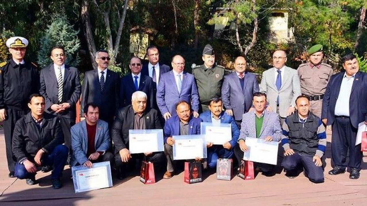Konuşmaların ardından, Ula Şirinköy Mahalle Muhtarı Bayram Kolkesen, Akçapınar Mahalle Muhtarı Şükrü Arslan, Akyaka Mahalle Muhtarı Feridun Özsoy, Gökçe Mahalle Muhtarı Mustafa Aracı, Çıtlık Mahalle Muhtarı Mehmet Kavasoğlu, Marmaris Çetibeli Mahalle Muhtarı Hüsamettin Yiğit ile Vali Yardımcısı Salih Gürhan, Marmaris Kaymakamı Celalettin Yüksel, İl Emniyet Müdürü Hakan Çetinkaya, Fethiye Avcılar Kulübü Başkanı Ali Yörük ile 31 Temmuz gecesi domuz sürek avında 11 kişilik son suikast timini Şirinköy mevkisinde görerek ihbarda bulunan ve yakalanmalarını sağlayan avcılar Davut Aydın ve Üzeyir Çalca'ya 'teşekkür belgesi' ve hediye verdi.