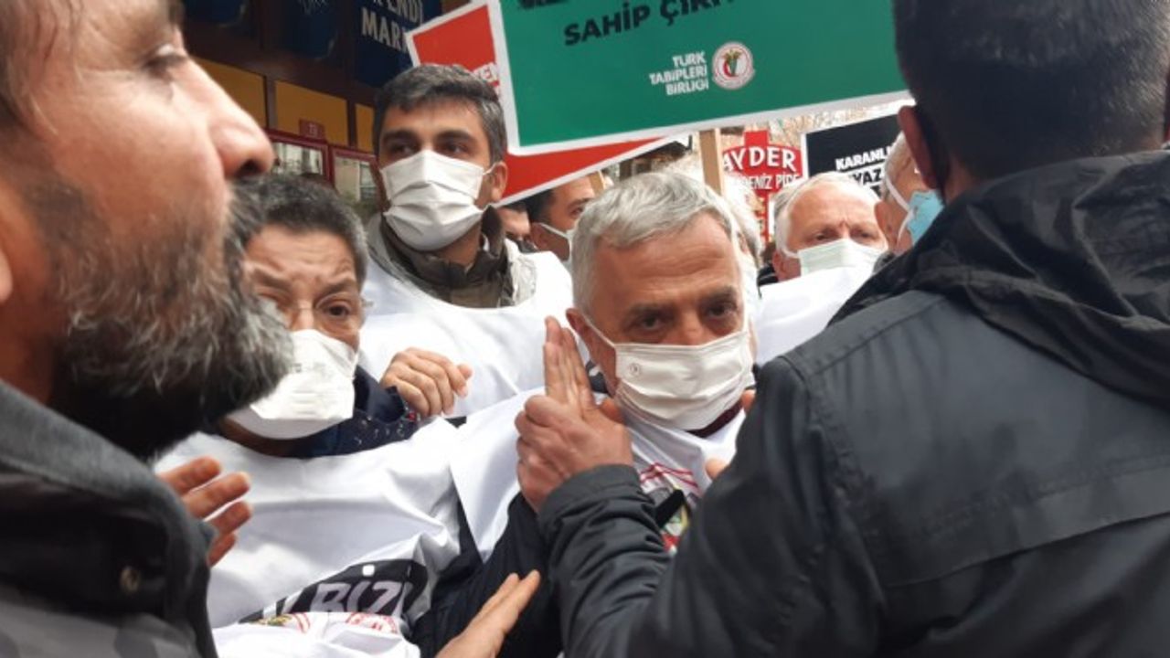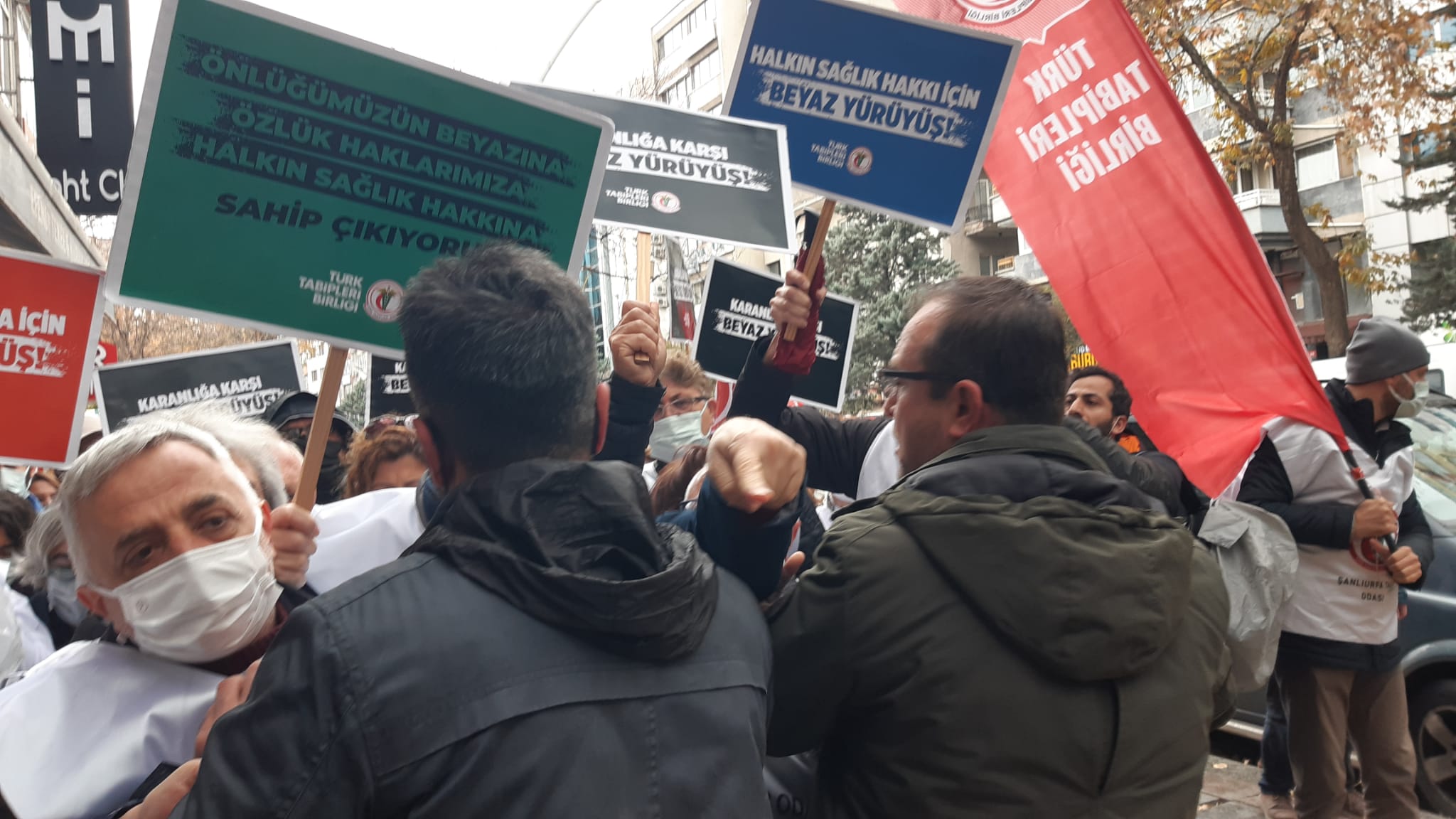 Yaşanan kısa süreli arbede de aralarında İzmir Tabip Odası Başkanı Op. Dr. Lütfi Çamlı'nın olduğu hekim grubuna polis müdahale etti. Polisin, Başkan Lütfi'ye yönelik müdahalesi ise kameralara yansıdı. Hekimlerin ısrarı sonucunda polis barikatı geri çekildi ve ardından hekimler TTB Genel Merkezi'ne yürüdü.