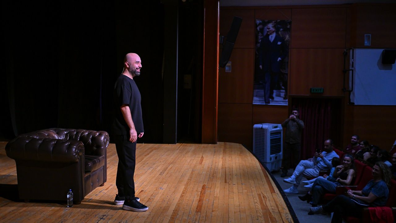 Kariyerine sosyal medya platformlarında paylaştığı skeçlerle başlayıp kısa sürede geniş bir takipçi kitlesine ulaşan Tahsin Hasoğlu, BKM Mutfak çatısı altında yaptığı tek kişilik gösterisiyle İZKİTAP kapsamında sahne aldı. İzmir Sanat’ta seyirciyle buluşan Hasoğlu, İzmir’de olmaktan duyduğu memnuniyeti dile getirdi. Gösterisinde, kadın-erkek ilişkilerinden aile dinamiklerine ve sinemadaki oyunculuk deneyimine kadar birçok konuyu esprili bir dille anlatan Hasoğlu, sahnedeki enerjisiyle izleyicilerin beğenisini topladı. Hasoğlu’nun, gösteriye gelirken fuarı gezerek ziyaretçilerle yaşadığı diyalogları ve “Bizans Oyunları” filmindeki rolü gibi kişisel deneyimlerini mizahi bir dille anlatması büyük ilgiyle karşılandı. İZKİTAP 2025, 26 Ekim’e kadar yayınevlerini, sahafları ve edebiyat dünyasının birbirinden değerli isimlerini İzmirli kitapseverlerle buluşturmaya devam edecek.