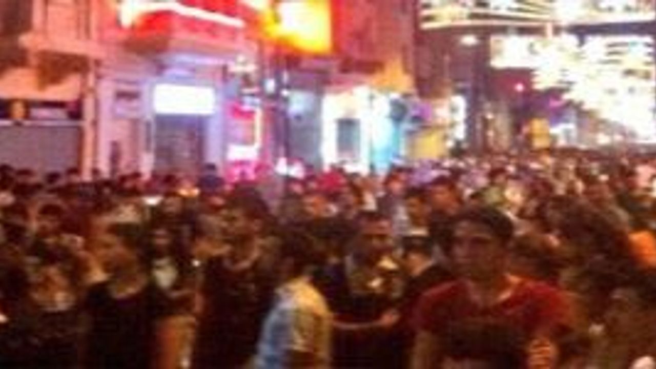 İSTANBUL - İstiklal Caddesi üzerinde dün saat 19.00 sıralarında toplanan grubun Taksim Meydanı'na yürüyüşüne izin vermeyen polsi grubu dağılmaları konusunda uyardı. Megafonla uyarıda bulunan polis, 'Burada toplu halde bulunmanıza kesinlikle müsaade etmeyeceğiz. Slogan atarak İstiklal Caddesi üzerindeki esnafa zarar veriyorsunuz, herkese zarar veriyorsunuz. Bu şekilde olması hiç uygun değil. Sizlere müdahale etmek zarar vermek istemiyoruz. Lütfen bizlere yardımcı olun. Dağılmazsanız müdahale etmek zorunda kalacağız' diyerek uyarıda bulundu. Uyarıların ardından çevik kuvvet polisleri kalkanlarıyla caddeden aşağı doğru koşarak ilerlemeye başladı. Eylemciler geri çekildi ancak dağılmadı.