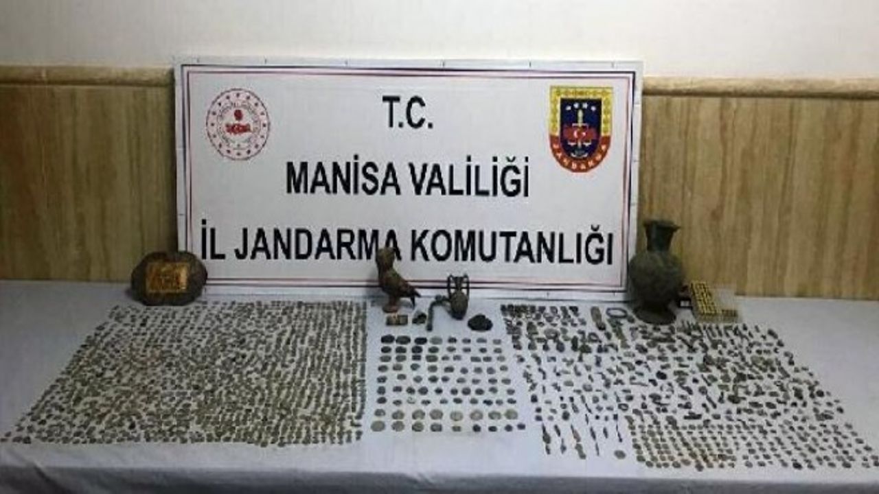 İlçe Jandarma Komutanlığı ekipleri, tarihi eser kaçakçılığı ihbarı üzerine dün akşam S.S.'nin adresine operasyon düzenledi. Yapılan aramada Helenistik ve Roma dönemine ait olduğu değerlendirilen 1850 sikke, 527 obje, 1 gordon boynuz desenli bronz plaka, 1 yuvarlak aslan başlı aplik, 1 mühür, 1 baykuş heykeli, 1 cam vazo, 1 bronz vazo, 1 vazo kulpu olmak üzere toplam 2 bin 384 tarihi eser, 1 dedektör, ve 50 adet 9 milimetre, 8 adet 7,62 milimetre çapında tabanca mermisi ele geçirildi.