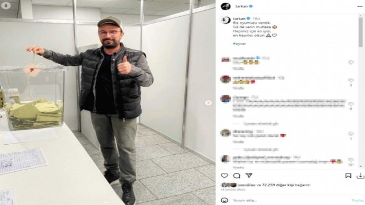 Tarkan, 9 Mayıs'ta da eşiyle sandık başına giderek oy vermiş ve o anları Instagram hesabından 'Ben oyumu verdim. Vatana millete hayırlı olsun' notuyla paylaşmıştı. Takipçilerine 'Oy ver' diyerek çağrıda bulunan Tarkan, oyunu kullandıktan sonra kendisini bekleyen hayranlarıyla da fotoğraf çektirmişti.