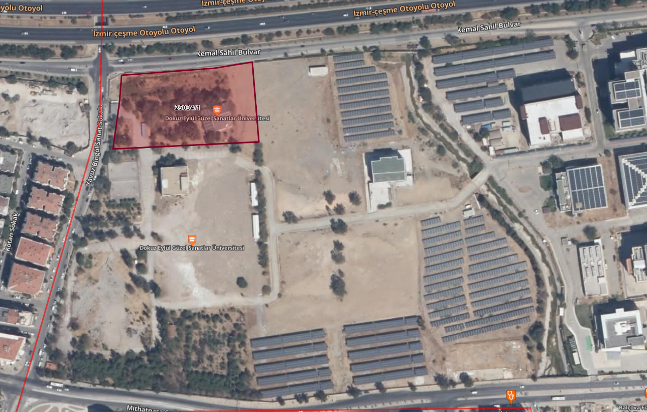 5 kat olan yapılaşma izninin ise 9 kata çıkarılırken emsal oranında bir değişiklik olmadı. Söz konusu parsel, Dokuz Eylül Üniversitesi Güzel Sanatlar Fakültesi’nin kampüs sınırları içinde yer alırken, DEÜ Tıp Fakültesi Hastanesi’nin de hemen yanı başında bulunuyor.