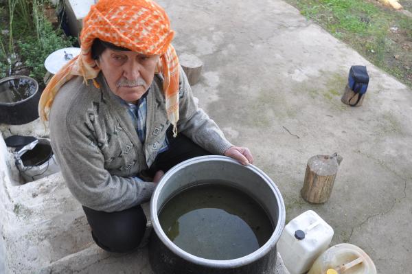'60 yıl önce çevremde 20 ev vardı. Yıllar geçtikçe ev sakinleri göç etti. Ya da öldü. Kala kala mahallenin dağlık kesiminde tek ev biz kaldık. Evimizi ilk yaptığımızda da suyumuz yoktu, şimdi yok. Eşimle birlikte kazan, bidon, leğen ve buna benzer su kaplarını evin etrafına diziyoruz. Yağmur yağınca damdan akan sular ve yağmur damlarıyla dolan kaplarla banyo, bulaşık, çamaşır ve temizlik için kullanıyoruz. Sadece içme suyunu ise mahallemizin alt kısmında bulunan çeşmeden karşılıyoruz. Gençken kendimiz suyu çeşmeden taşıyabiliyorduk ancak yaşlanınca taşıyamaz hale geldik. Çocuklarda evlenip gidince son 10 yılda işimiz iyice zorlandı. İçme suyunu evimize taşıyamaz duruma geldik. Bidonları çeşmeye bırakıyorum. Dolunca çocuklar gelirse getiriyor. Gelmezse, komşular araçlarıyla eve kadar getiriyor. Zor durumdayız su ihtiyacımızı gidersinler.'